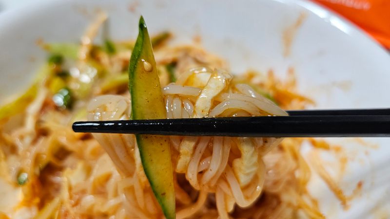 냉동실에 있던 쫄면 사리 한올한올 뜯으며