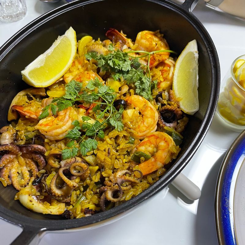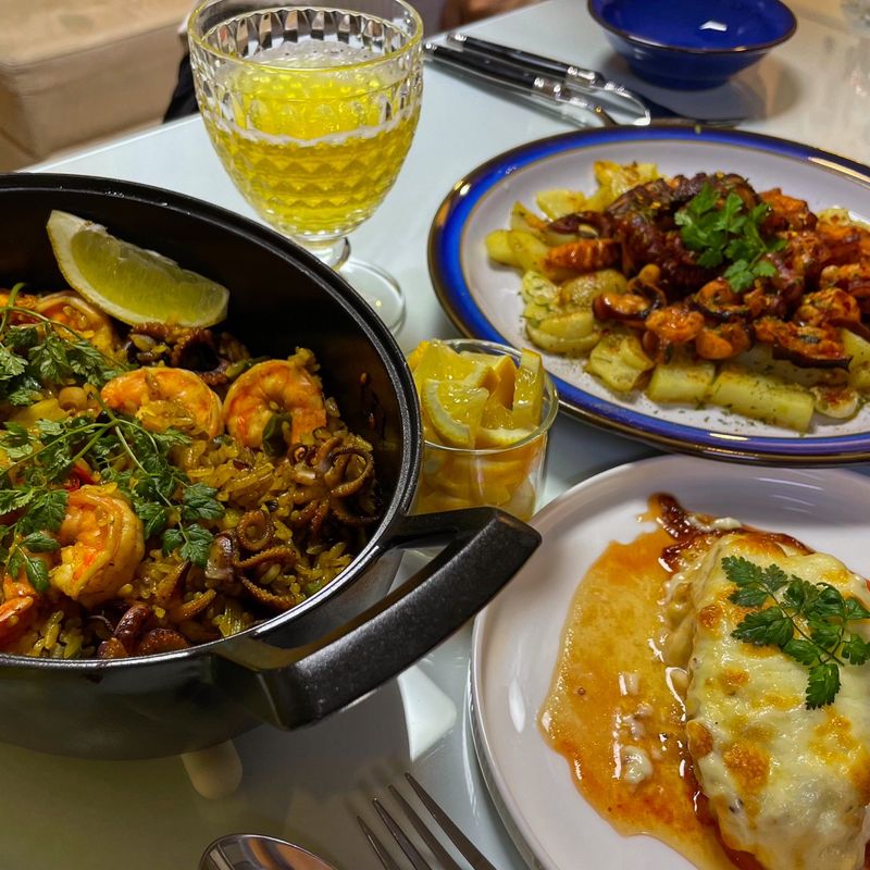 해산물 빠에야, 뽈뽀(문어) 스테이크, 꿀대구 스테이크 3가지를 만들어봤어요.
