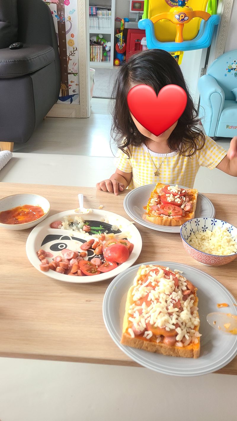 식빵위에 폰타나토마토소스바르기 각종 토핑올리기 치즈올리기 오븐에 굽기 아이가 엄청 좋아합니다