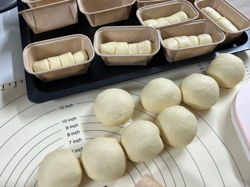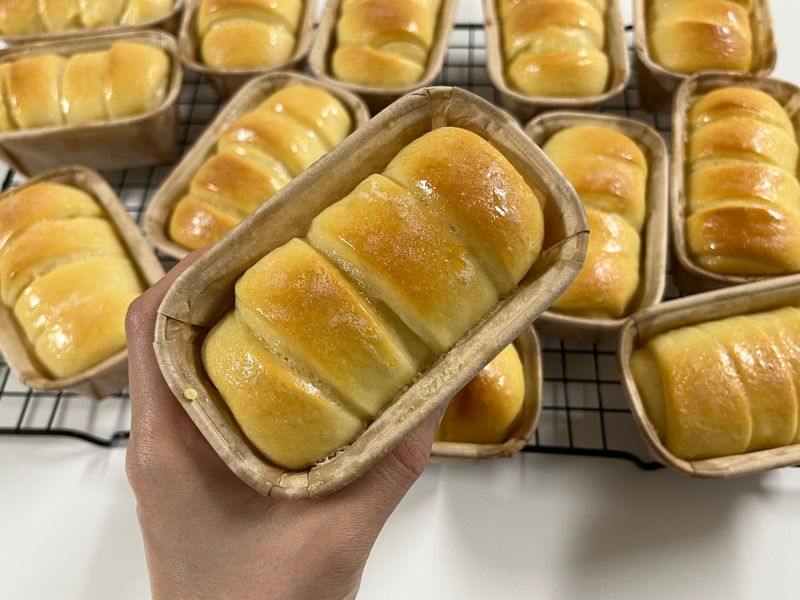 오랜만에 반죽기 가동!!! 달달한 미니 연유 식빵 만들어봤어요 ㅎㅎ 레시피는 유튜버 진영님꺼 보고 따라했어요! 구움색을 좀 더 줄껄 그랬네요🤣 그래도 촉촉하고 부드러워서 맛나요💗