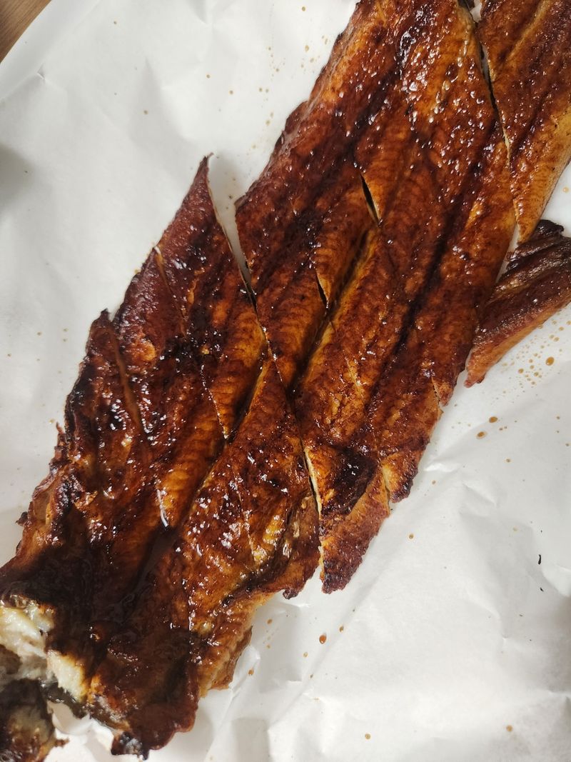 장어구이 정말 몸보신제대로 되는것 같아요. 요즘 신랑이 너무 힘이 없어 보여서 에어프라이기에 구워서 양념 발라줬네요. 와사비와 함께 먹으면 느끼하지도 않고 맛있네요.