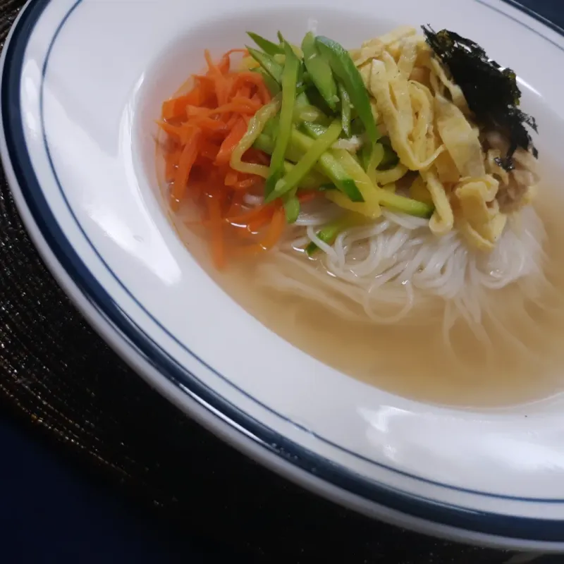 5. 고명을 올리고 육수를 부어 주면 끝.