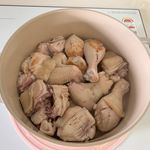 닭 내장을 재거하고 칼집을 내서 물에 담가주세요.