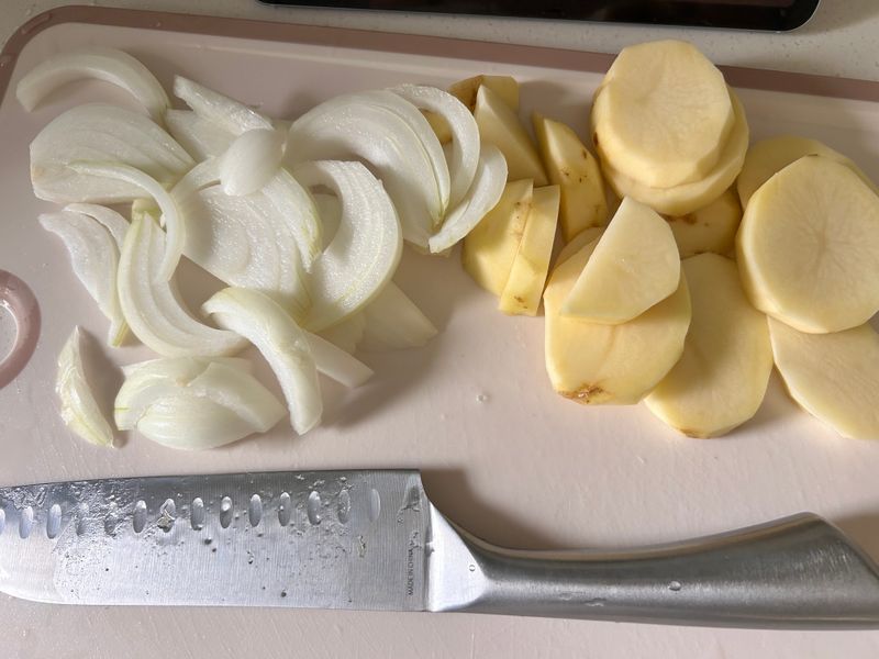 양파, 파, 감자를 잘라줍니다.