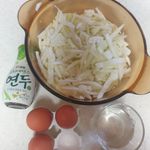 재료는 양배추(250g), 달걀3개(150g) 물1컵(200ml) 연두1스푼(10g)