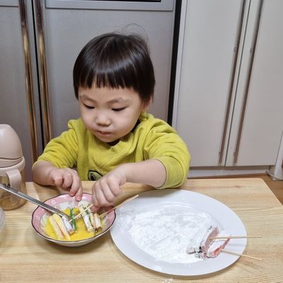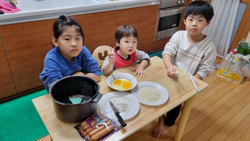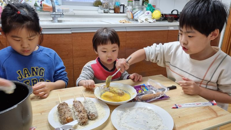 쌀핫도그 만들기 했어욤♡ 새미네 요리키트가 있는줄 이제야 알았어용 이제 최애템이 될듯해요^^