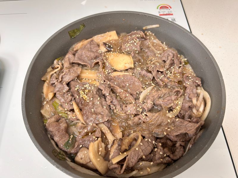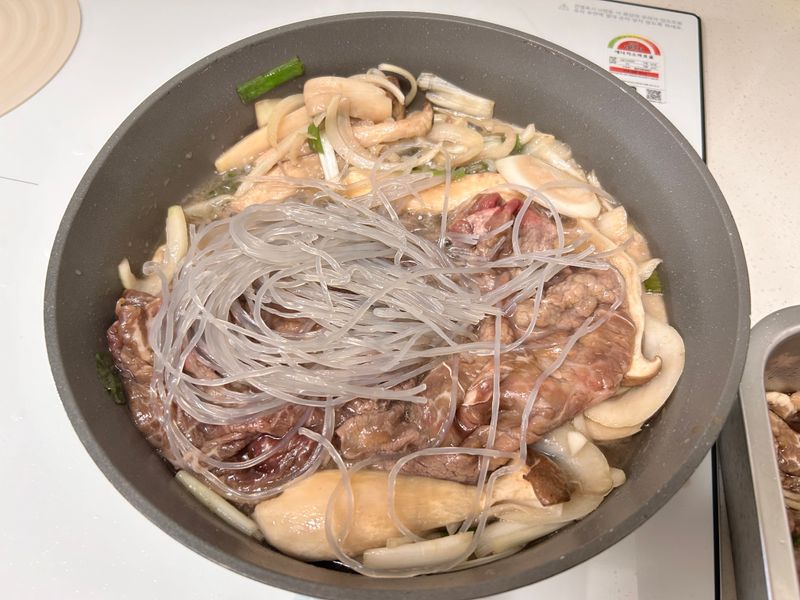 당면을 뜨거운물에 불려둔 후에 먹을 때 같이 넣어줍니다.