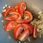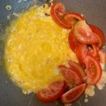 Step 2. 파를 볶다가 토마토를 볶아줍니다