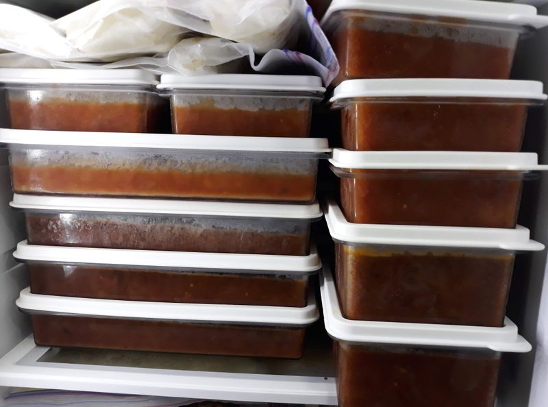 냉동실에 차곡차곡 쟁여 두었어요. 보고 있으니까 든든하고 보람이 있네요.