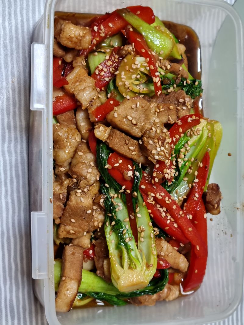 집에 남는 삼겹살이랑식감좋은 청경채 삼겹살 한입크기로썰어 마늘생강즙설탕으로밑간하고바삭하게 구워준뒤 세척한청경채넣어 휘리릭 굴소스 넣고 마무리 참기름넣어 간단하게 있어보이는반찬완성요
