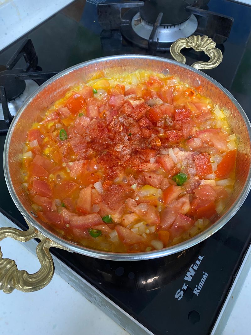 토마토가 뭉글뭉글 끓으면 계란 투하 (계란은 작은 후라이팬기준 3개 정도?)