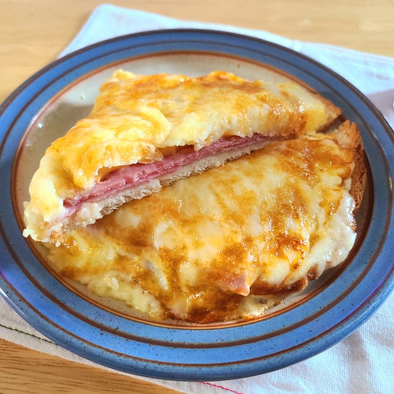 모짜렐라치즈 팬에 굽고, 치즈, 햄, 식빵 올리고, 뒤집어서 굽고!!! 끝!!!