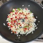 다진마늘과 양파를 먼저 넣어 볶는 이유는 기름에 향을 입혀 돼지고기를 넣었을 때 누린내 등의 향을 감소시키기 위함이에요!