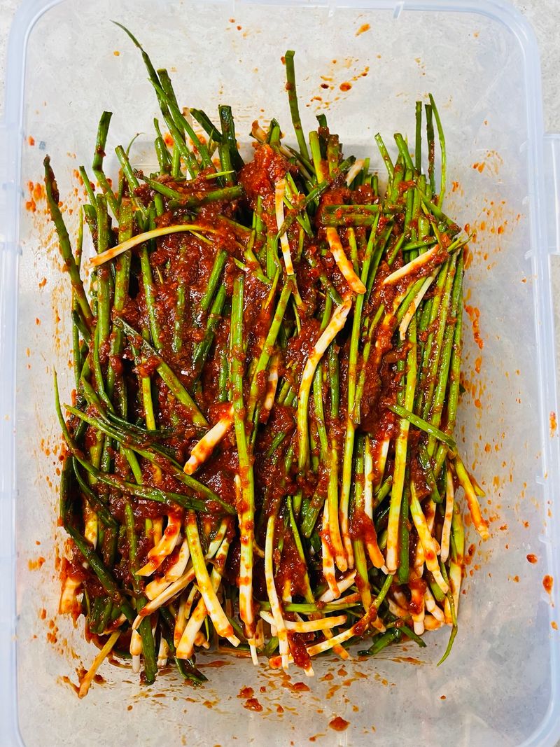 쪽파 손질도 깨끗하게 넘 잘하시고 완성된 파김치 때깔도 미쳤어요 🤩