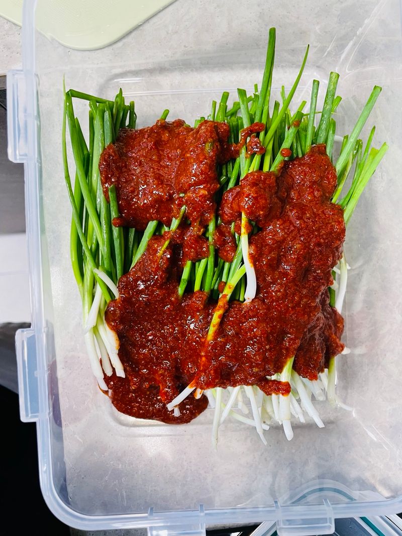설명서 잘 읽어보고, 양념 만들어 5분 불린 뒤 먹기 좋게 조금 자른 쪽파에 버무려 반나절 실온에서 숙성! 이후 조금은 반찬통에 덜어 울 엄마집으로 가져다 줬어용 ㅎㅎㅎ