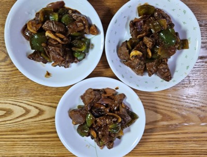 이번 찹스테이크 레시피에서 고기 먼저 볶고나서 야채를 따로 볶으라고 안내해주었는데요.. 그냥 같이 볶으려다가 솔루션을 보고 아 이런 차이가 있구나 하고 따로 볶았더니 확실히 질긴 감이 전혀 없었습니다.