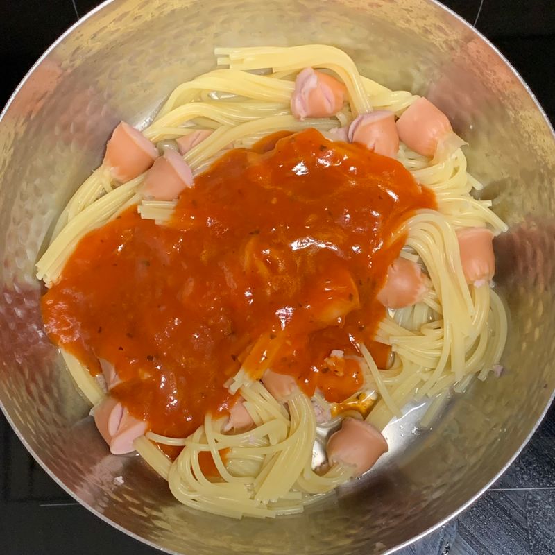 그래도 소시지들이 꽤나 버거웠는지 소시지 안의 내용물이 면 들에게 밀려 떨어지기도 했는데 .. 이거 같이 삶고 소스랑 섞으니까 꽤나 라구 파스타 느낌도 나고 오히려 좋아 ~ 였습니다!!!