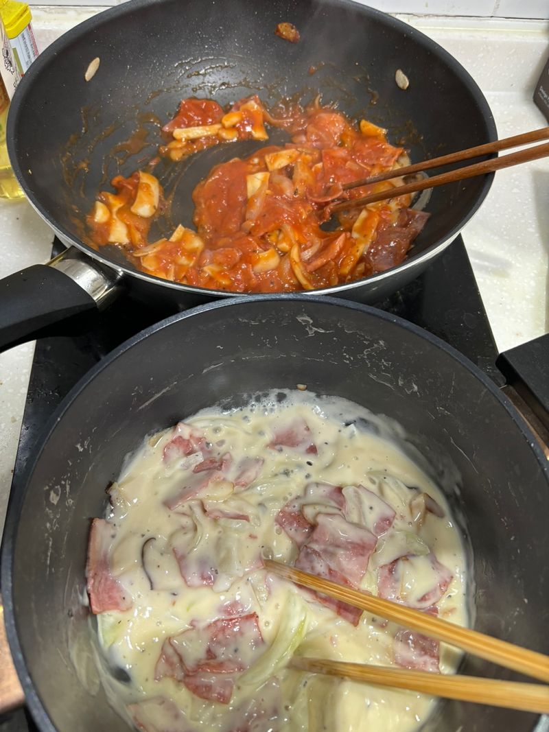 [새미즈 2기] 같이 만들어 나눠먹으면 더 맛있는 크림/토마토 스파게티