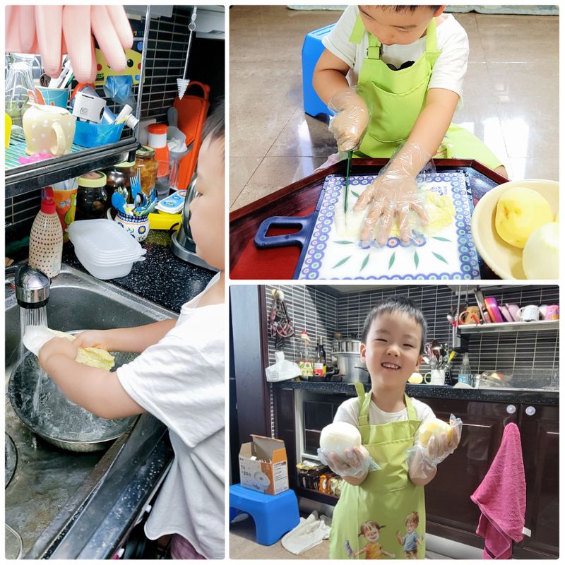 힘들게 일하고 퇴근 하시는 아빠를 위해 저녁준비하는 엄마 돕겠다고 나서는 스윗보이 6살 아들램~ 시간은 두배로 늘겠지만 맘이 이뻐 같이 뚝딱뚝딱 있는 재료로 정체 모를 반찬 만들기? 주방놀이? 해봤습니다~