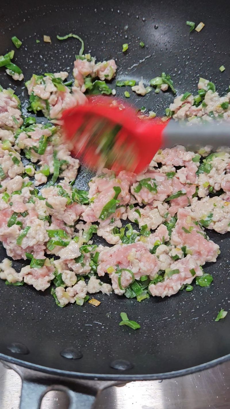 2. 맛술 2숟푼 넣고 갈아둔 돼지고기를 넣어 볶아준다