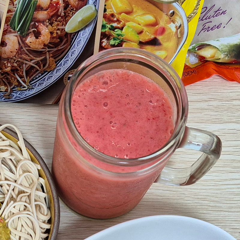 냉동딸기를 함께넣고 믹서에 갈으니 얼음이 필요가 없네요!