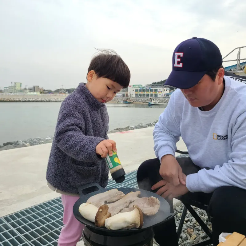 캠핑가서도 고기굽는건 첫째