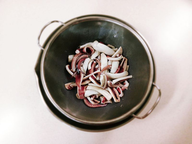 오징어를 데칠 때에는 팔팔 끓는 물에 먼저,