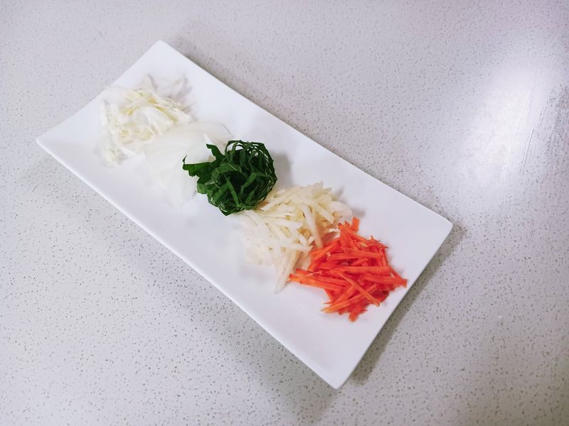 [꿀팁] : 야채는 최대한 얇게 썰어야 식감이 좋아요.