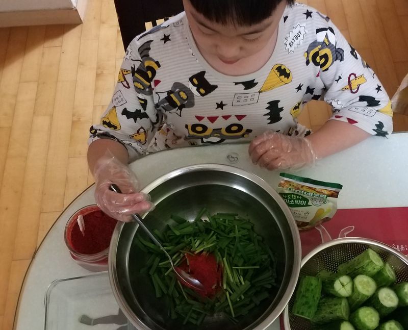 양념을 너무 많이 넣으면 오이소박이가 짤 수 있으니 적당히 넣어요.