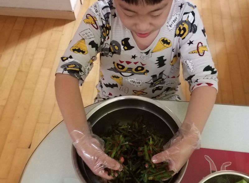 잘 절여진 오이는 물에 살짝 씻어서 물기를 뺀다.