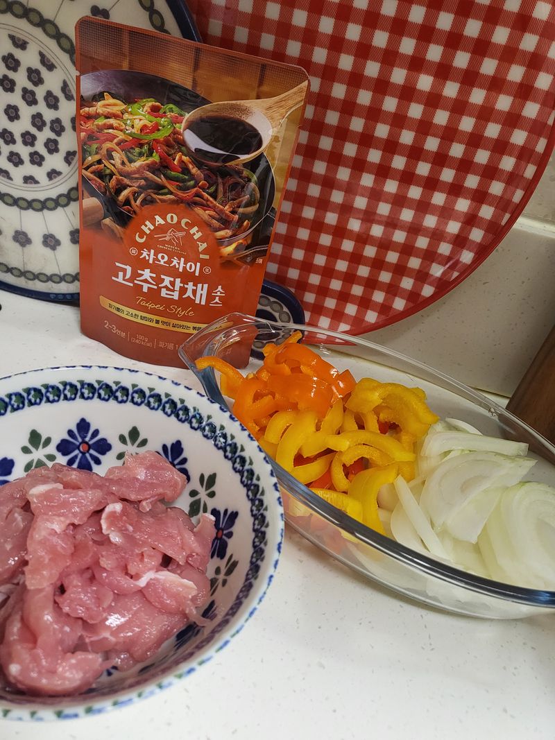 즐요클럽 덕분에 간단하게 고추잡채를 뚝!딱! 요리 해 보았어요 꽃빵에 곁들이니 순.삭.이네요^-^ 재료는 양파.파프리카.잡채용 돼지고기.고추잡채소스 간단한 재료로 특식을 즐겨보세요 소스만 있으면 누구든 쉐프님이 된답니다