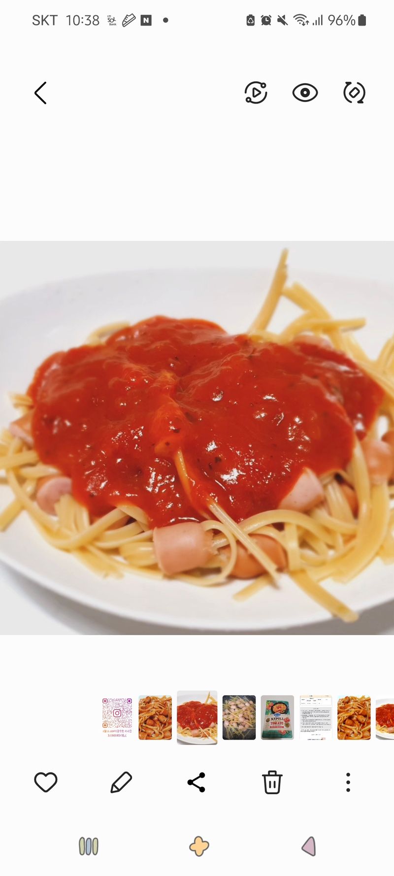- 전자레인지로 #폰타나나폴리뽀모도로토마토파스타소스 1분간 데운 후 소스면에 부어주면 완성