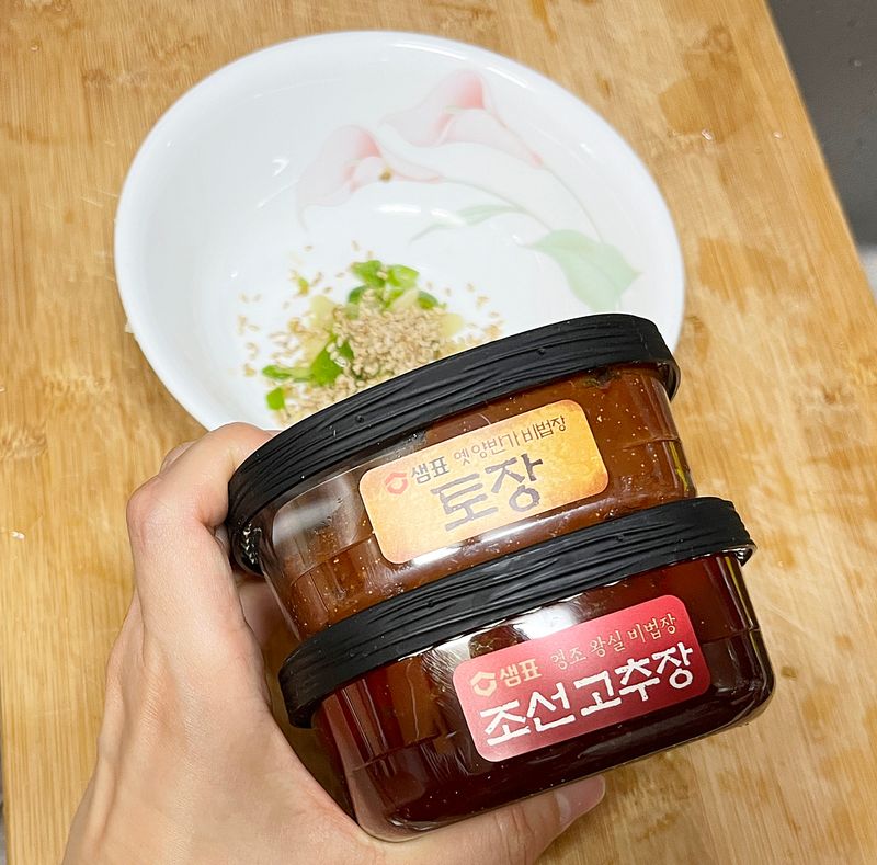 샘표 조선고추장, 샘표 토장을 이용한 쌈장 만들어봤어요. 청양고추, 마늘을 곱게 다지고 통깨를 준비해요~ 샘표 고추장, 된장을 2스푼씩 준비해요! 참기름도 넣어서 섞어주면~ 맛있는 쌈장 완성! 채소쌈과 곁들여도 좋고 찌개 끓일 때 살짝 넣으면 풍미가 사는 쌈장 만들기 완성! 진짜 간단하죠?