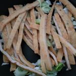 볶은 어묵을 잔뜩 올려줘요.