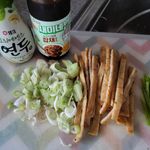 어묵과 양파, 고추를 채 썰어 준비해요.