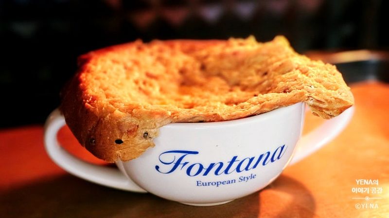 내열 용기에 수프를 담고, 식빵을 덮은 후 계란물을 발라줍니다.