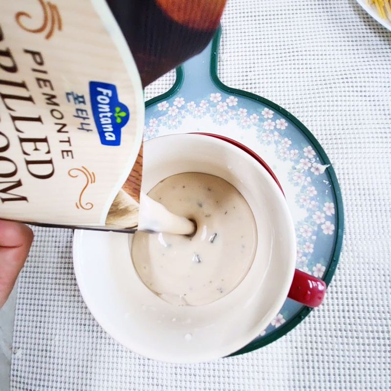 오븐용기에 그릴드 머쉬룸 크림스프 부어주기