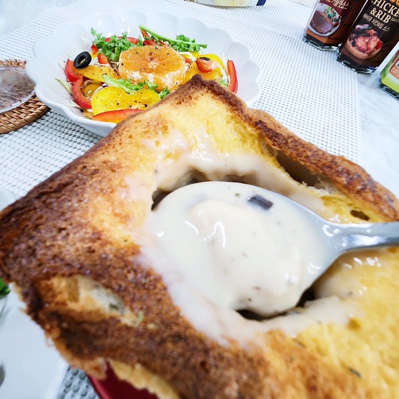식빵 통째로 올려 구워주니 분위기도 있고,