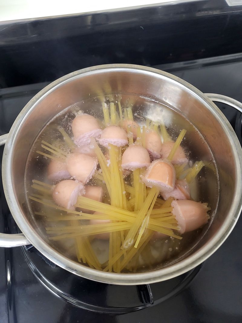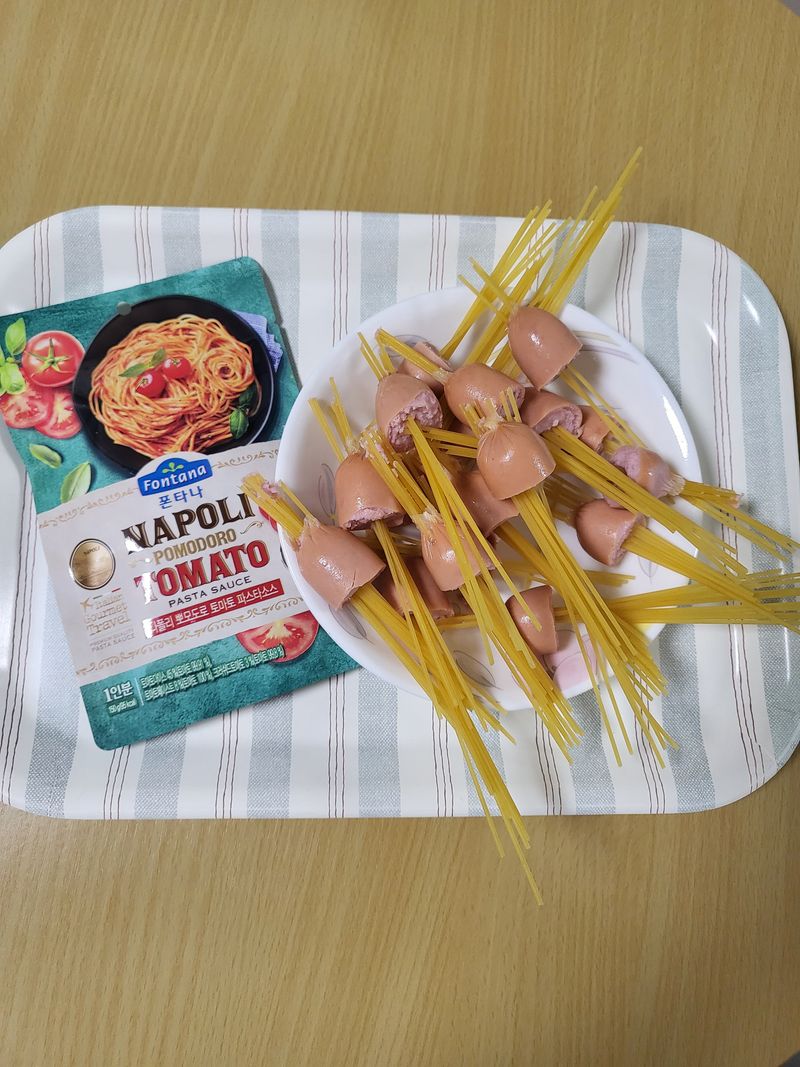 단순히 면만 삶아서 소스만 뿌려 먹었는데 이렇게 조리해 먹으니 모양도 새롭고 소시지와 면을 같이 먹기도 편한게 신기해요.요리란게 어렵게만 느껴졌는데 이런 간단한 방법으로 특이하고 새로운 파스타 요리도 가능하네요~~^^
