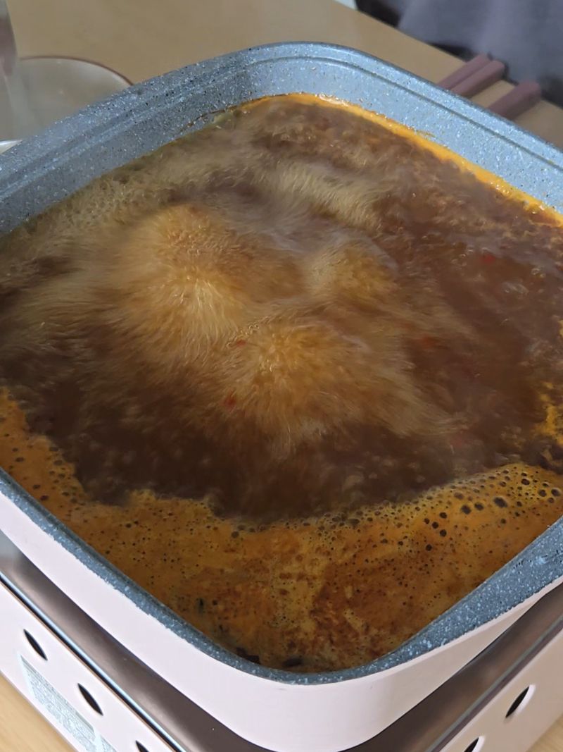4. 마라훠궈 육수가 바글바글 끓을때까지 기다려주세요.