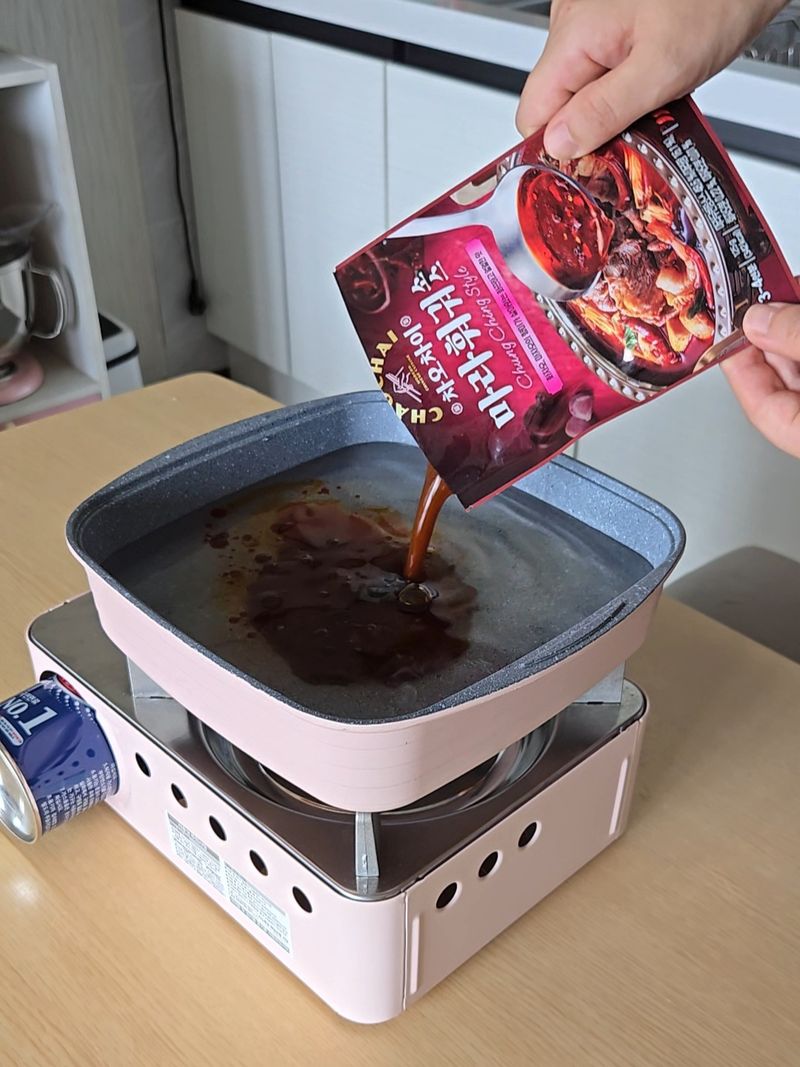 3. 차오차이 마라훠궈소스 1봉 넣어주세요.