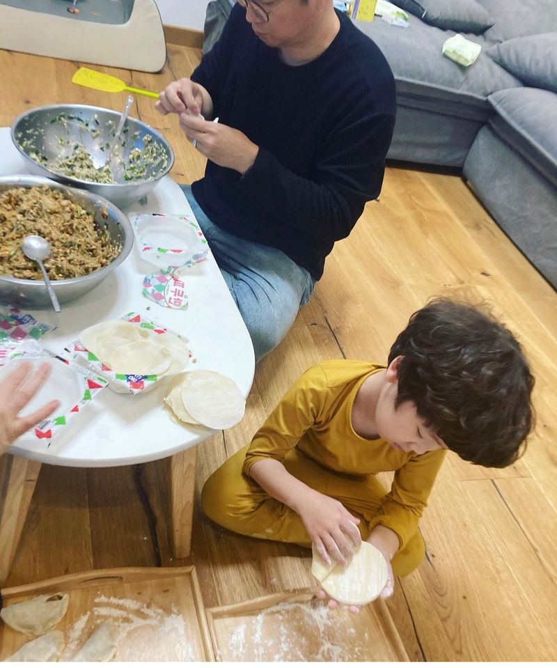 주말. 온가족이 모여서 집 손만두만들기^^ ㅋㅋ 두부랑 당면이랑 고기 부추 등등 속재료 만들어서 김치만두 고기만두 온가족이 모여서 만두 빚고 찜만두랑 만두국 끓여서 냠냠^^