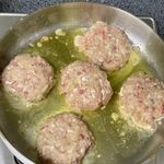 식용유를 조금 더 추가하여 함박스테이크를 골고루 익혀 줍니다