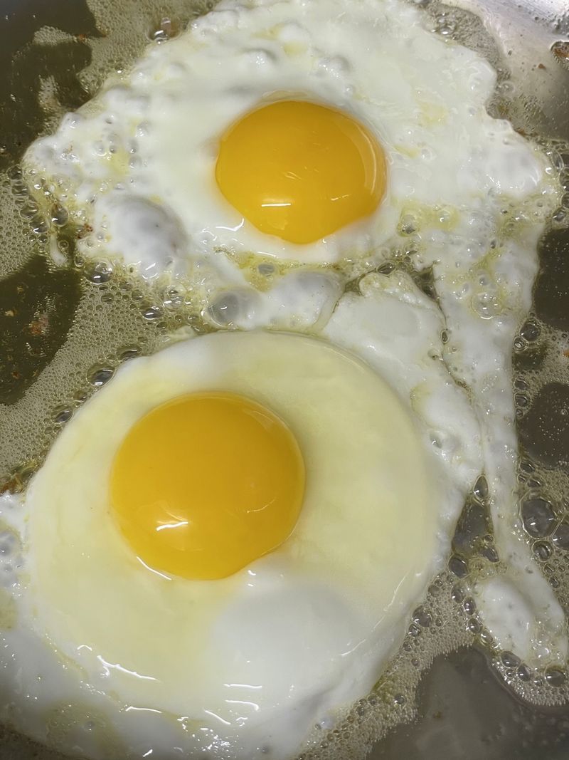 달군 팬에 식용유를 넣고 계란후라이를 반숙으로 만들어 줍니다