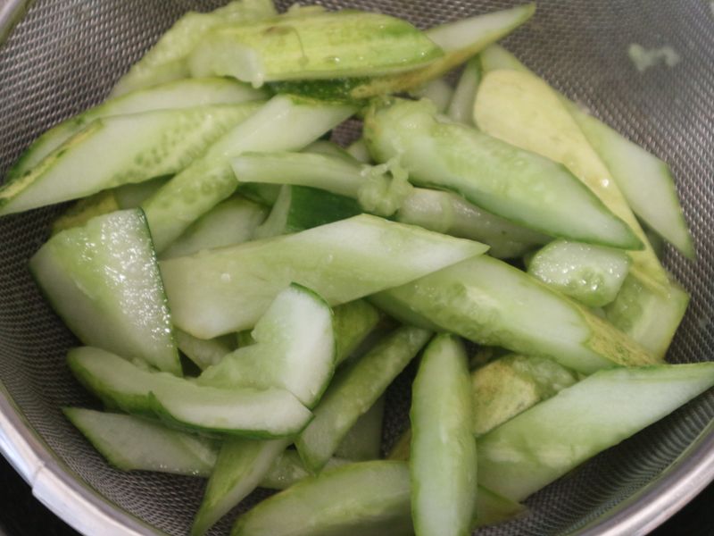 집에 있는 오이가 탕탕이를 시도하다가 실패해서 어슷썰기로 만들어 주었습니다.