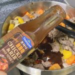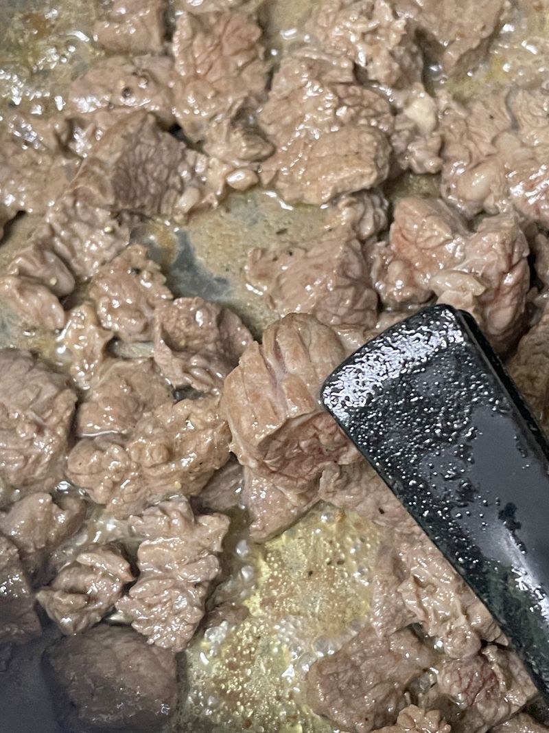 예열된 팬에 식용유를 두른 후 소고기를 잘 익혀 줍니다