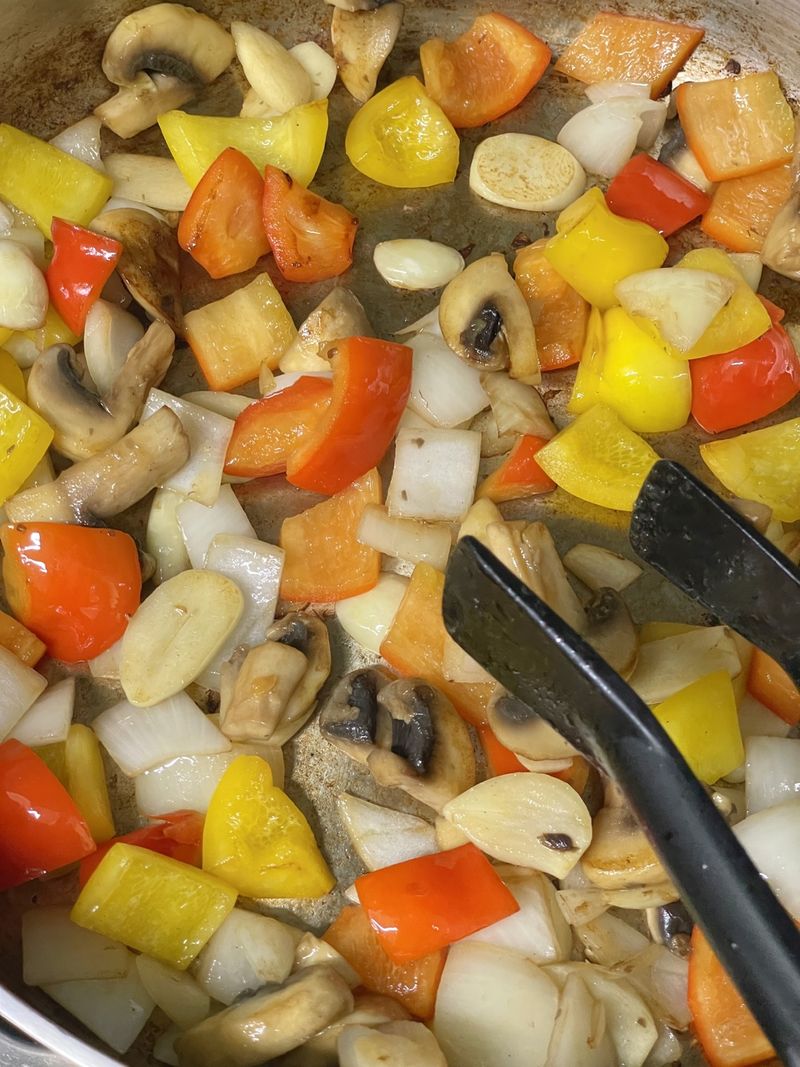 Step 3. 같은 팬에 채소 볶기