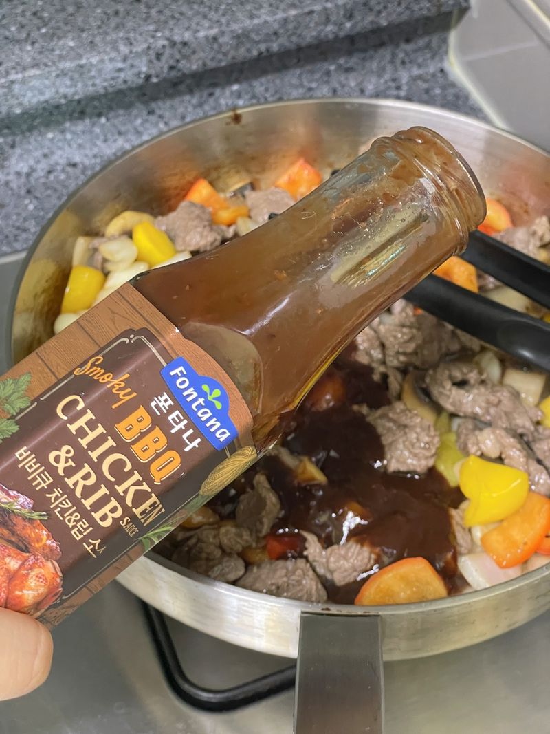 Step 4. 고기와 소스 넣고 볶기