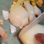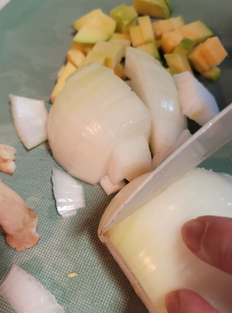 버섯, 양파, 호박을 2cm 크기로 썰어줍니다.