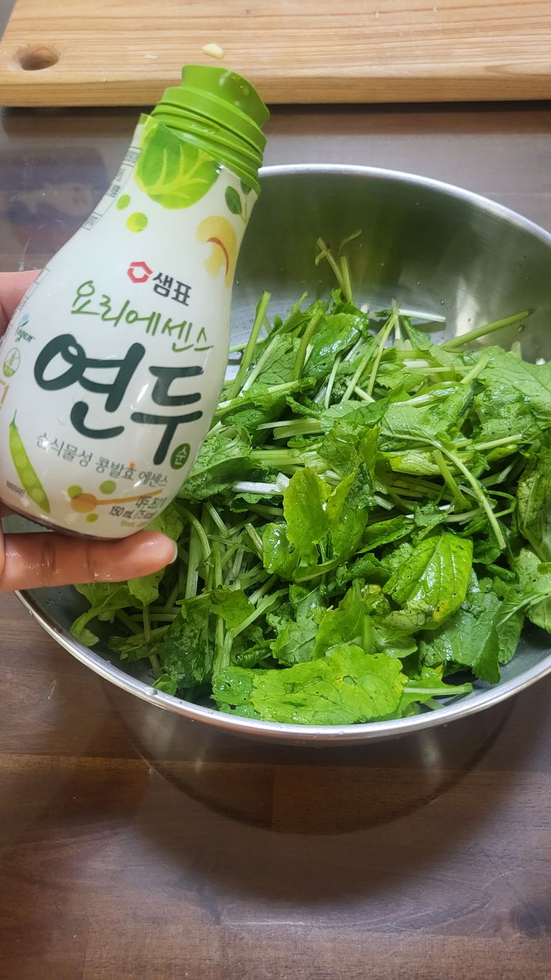 물기 털고 연두한숟가락 ,식초두숟가락, 깨, 스테비아설탕넣고 버무리기~^^♡